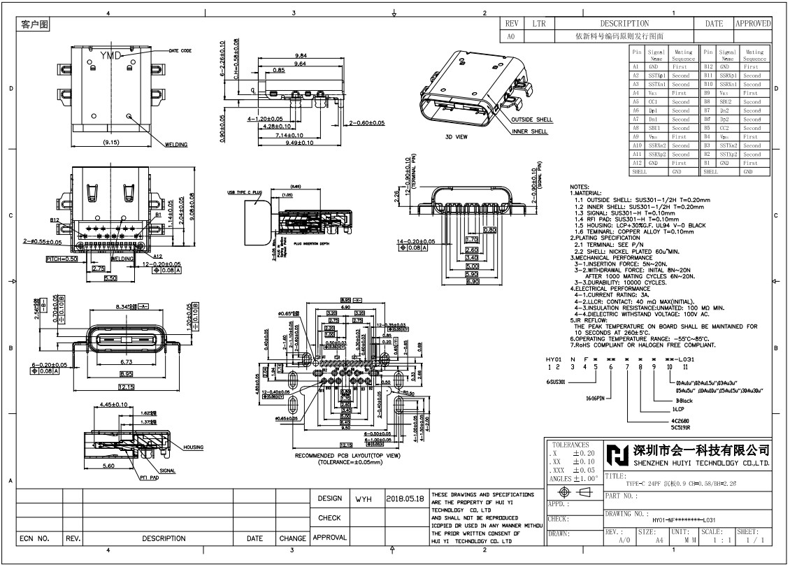 TYPE-C 24PF 沉板0.9 DIP+SMT CH=0.58点击次数:1333