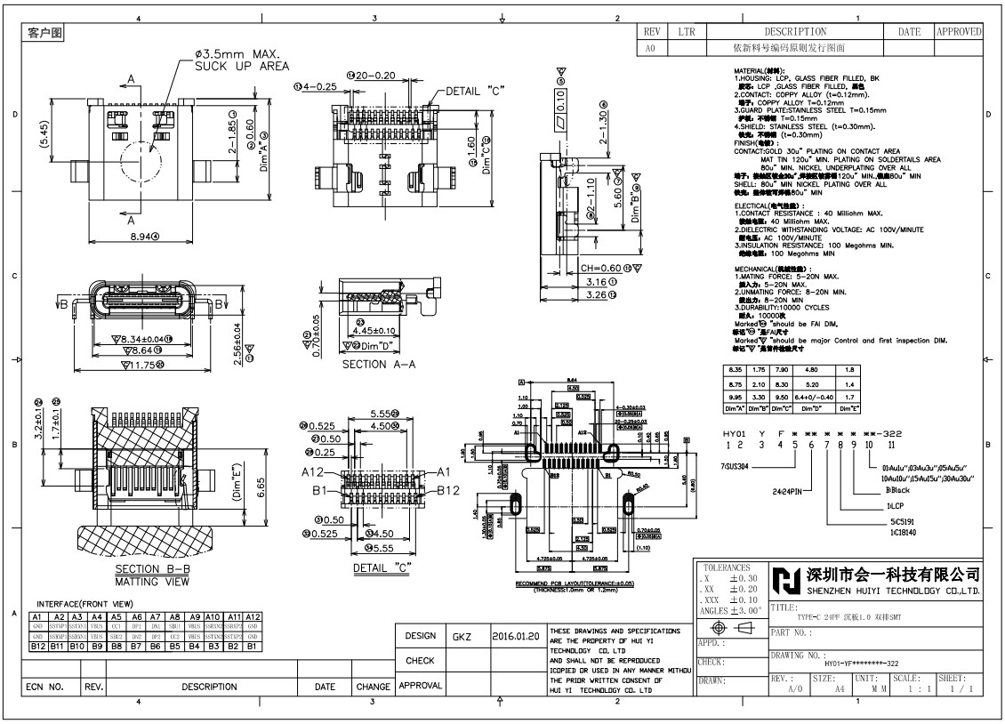 TYPE-C 24PF 沉板1.0 双排SMT点击次数:1358